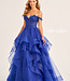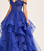 Robe bleu saphir, évoquant les profondeurs de l'océan, ornée de motifs délicats, où chaque brillant raconte une histoire d'amour.
