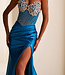 37016 Robe Corset En Satin Marine et Or - Mirage